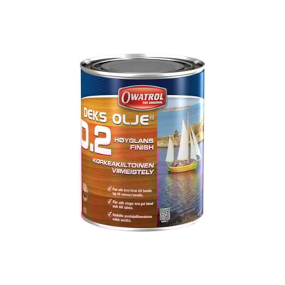 Owatrol Deks D1 olja för mättnad av trä. Har en maximal förmåga att tränga in i alla träsorter. Oljan tränger ut fukt och luft och fyller träets porer. Förhindrar krympning, svällning, vridning och sprick-bildning. Användes både över och under vattenlinjen, in- och utvändigt. Oljan är helt färglös, lyfter fram träets naturliga fibrer och ger en silkesmatt finish. Används med fördel som underlag för Owatrol Deks D2 olja (art.nr: 4592-2) och alla typer av oljebaserade lackfärger.