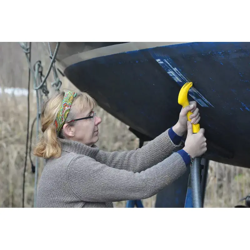 Pro Scraper från Gelplane är en effektiv färgskrapa för att mekaniskt avlägsna bottenfärg från båtskrov utan kemikalier. Skrapan kan anslutas till en vanlig dammsugare (32 mm slang), vilket suger upp färgrester direkt och ger en renare arbetsmiljö.