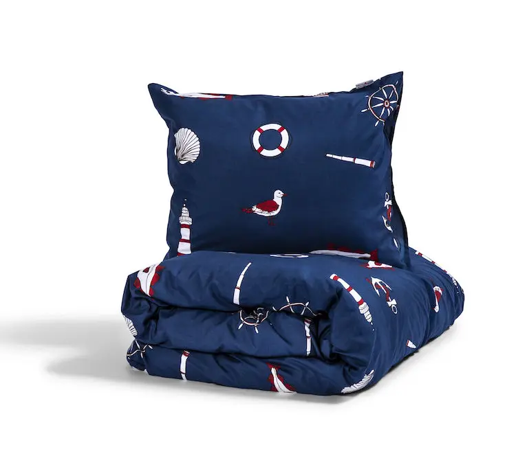 Påslakanset med marinmotiv av mikrofiber, marinblå
