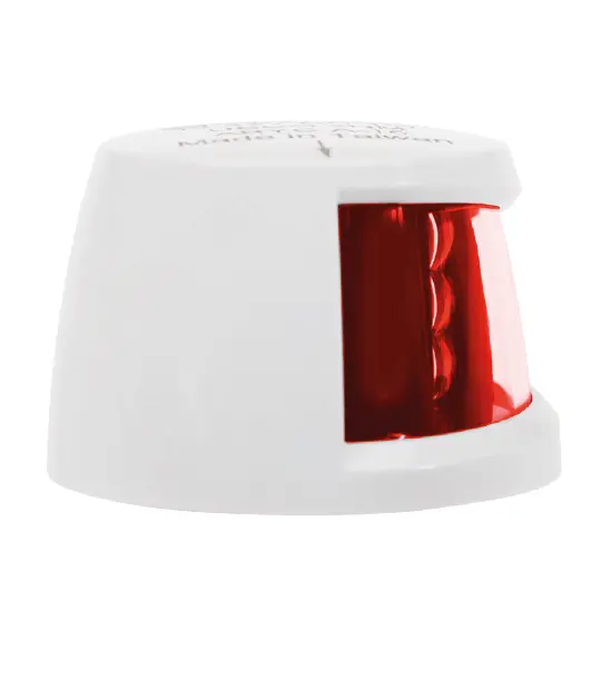 Styrbordslanterna med vitt hus för toppmontering. Lyser med rött sken. Synlig 2 nautiska mil. För båtar upp till 20m.