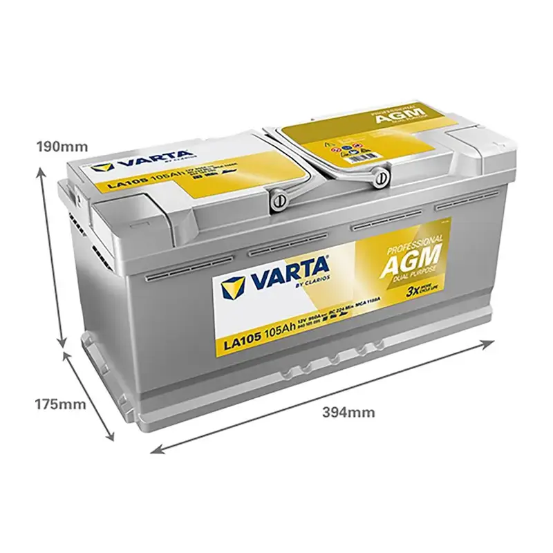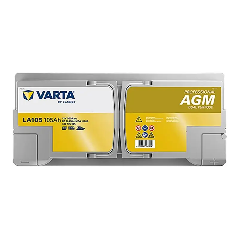 Batteri Varta AGM Dual 105Ah är konstruerat för att klara både höga startströmmar och långvarig energiförbrukning. Det passar utmärkt för kylskåp, värmare, navigationsutrustning och annan elektrisk utrustning ombord.