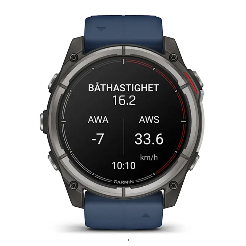Garmin Quatix 8 är en marin smartwatch med GPS, ljusstark 1,4″ AMOLED-skärm och LED-ficklampa som har alla de funktioner du vill ha, både vid styrplatsen och på land.