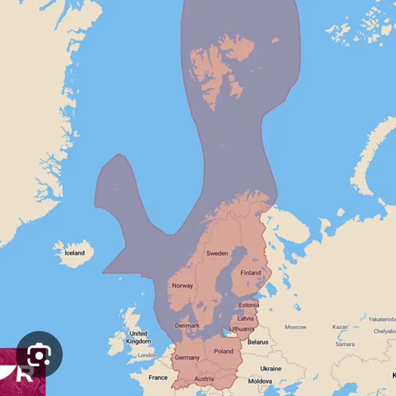 I sjökortets täckningsområde ingår Norge, Sverige, Finland, Danmark och Tyskland.