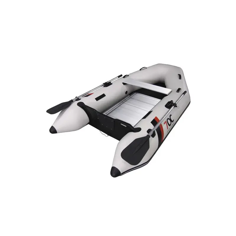 Gummibåt 7OC 280 Alu Grey. En uppblåsbar gummibåt för både familje- och fritidsbruk. Tillverkad av 0,8 mm kraftig PVC-duk erbjuder den hållbarhet och långvarig prestanda på vattnet. Båten har en aluminiumdurk som ger stabilitet, plats för 3 vuxna + 1 barn och kompatibel med en 6 hk 4-taktsmotor / 10 hk 2-taktsmotor.
