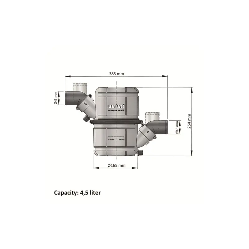 Vattenlås Vridbar Nlp45hd. Heavy Duty vattenlås/ljuddämpare är av tvåstegstyp med två expansionskammare som är skilda åt av en horisontell vägg med stigrör i mitten. Om man jämför med vattenlås av enstegstyp (med bara en expansionskammare) har NLP vattenlås en väsentligt högre ljuddämpande effekt. Övre kammaren kan vridas ca 300° och såväl inloppsanslutningen som utloppsanslutningen kan vridas 360°, vilket gör den enklare att installera ljuddämparna i ett vanligen trångt motorrum.