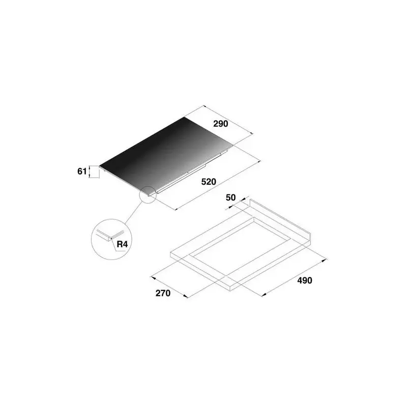 Håltagning: 270 × 490 mm