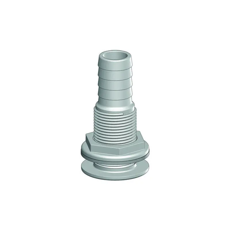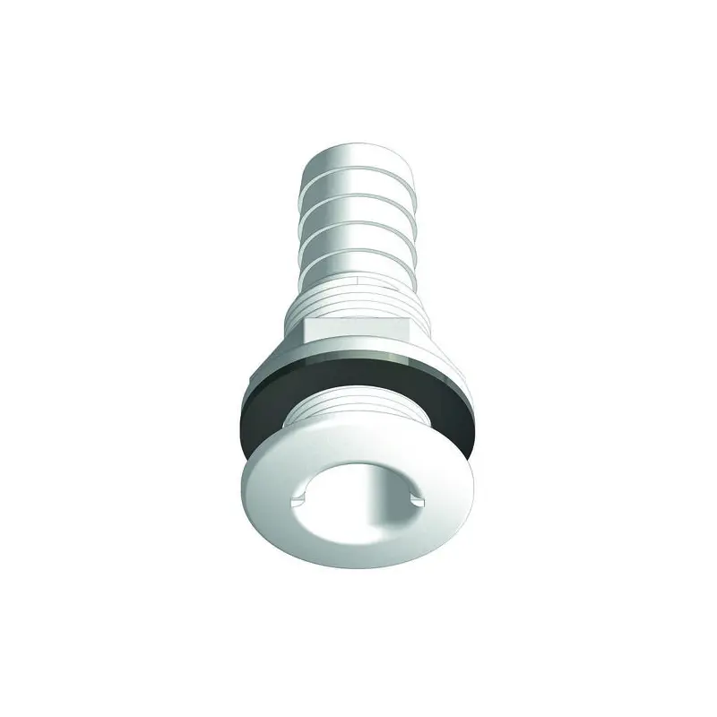 Trudesign Bordsgebomföring 16mm 1/2". Bordsgenomföring med slanganslutning i komposit (armerad Nylon) för användning ovanför vattenlinjen. Lämpligt för alla typer av skrov, aluminium, stål, trä, glasfiber m.m. Materialet är extremt starkt och har låg vikt. Materialet kan heller inte korrodera. Kemikalieresistent och resistent mot diesel, bensin, lösningsmedel m.m. UV-resistent.